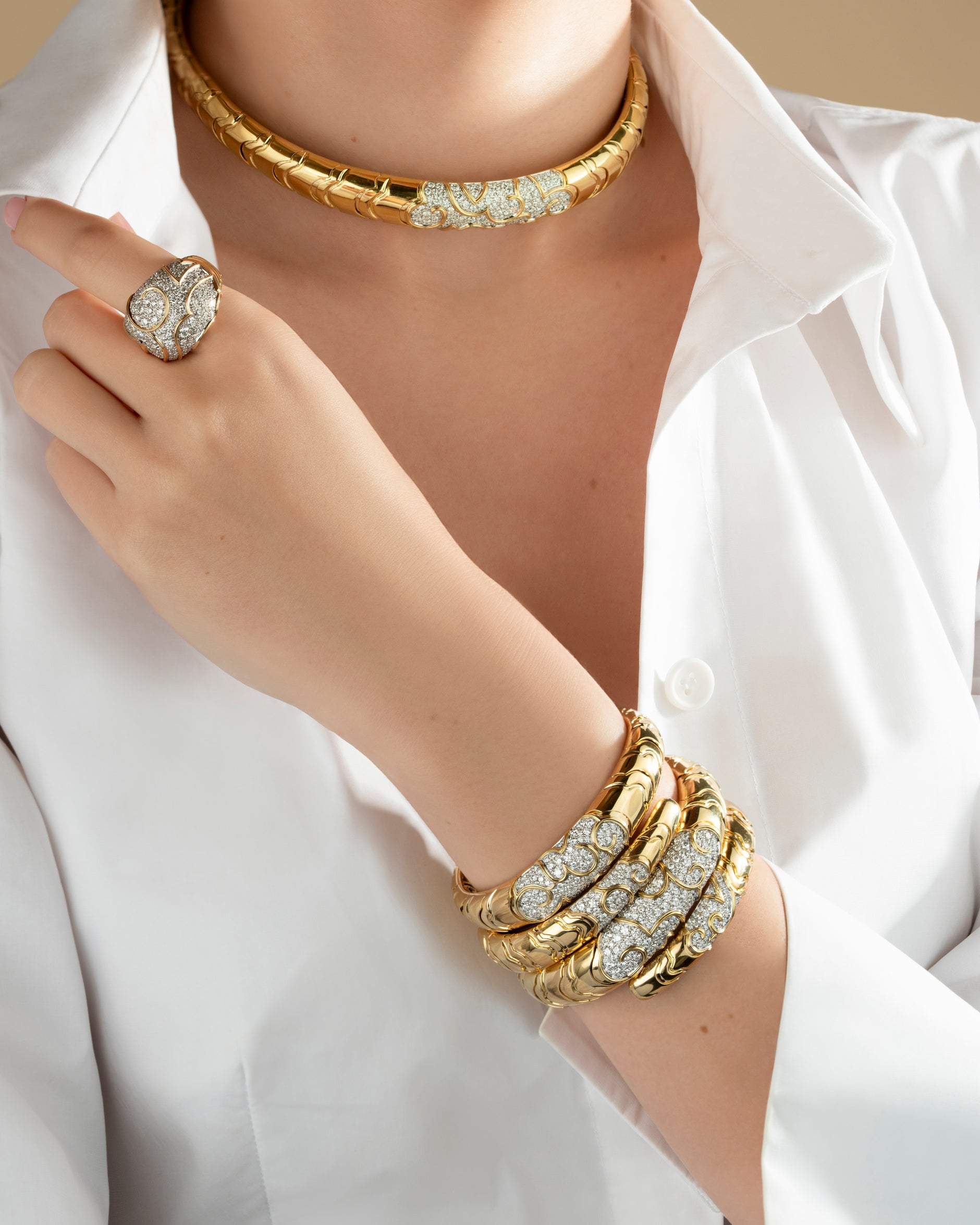 Marina Bulgari represents a rare intersection of heritage, independence, and authorship. Having left her family’s Maison in 1976, Marina Bulgari built a body of work defined by boldness, restraint, and a deeply personal relationship to craft. Her jewelry has always existed closer to art than product.